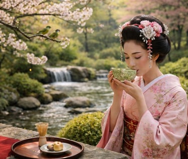 A cerimônia do chá (sadō) é um ritual tradicional japonês em que o chá verde em pó (matcha) é preparado e servido de forma cuidadosa e cheia de significado. Cada gesto — desde limpar os utensílios até oferecer a tigela — segue uma harmonia que valoriza respeito, silêncio e atenção ao momento presente.