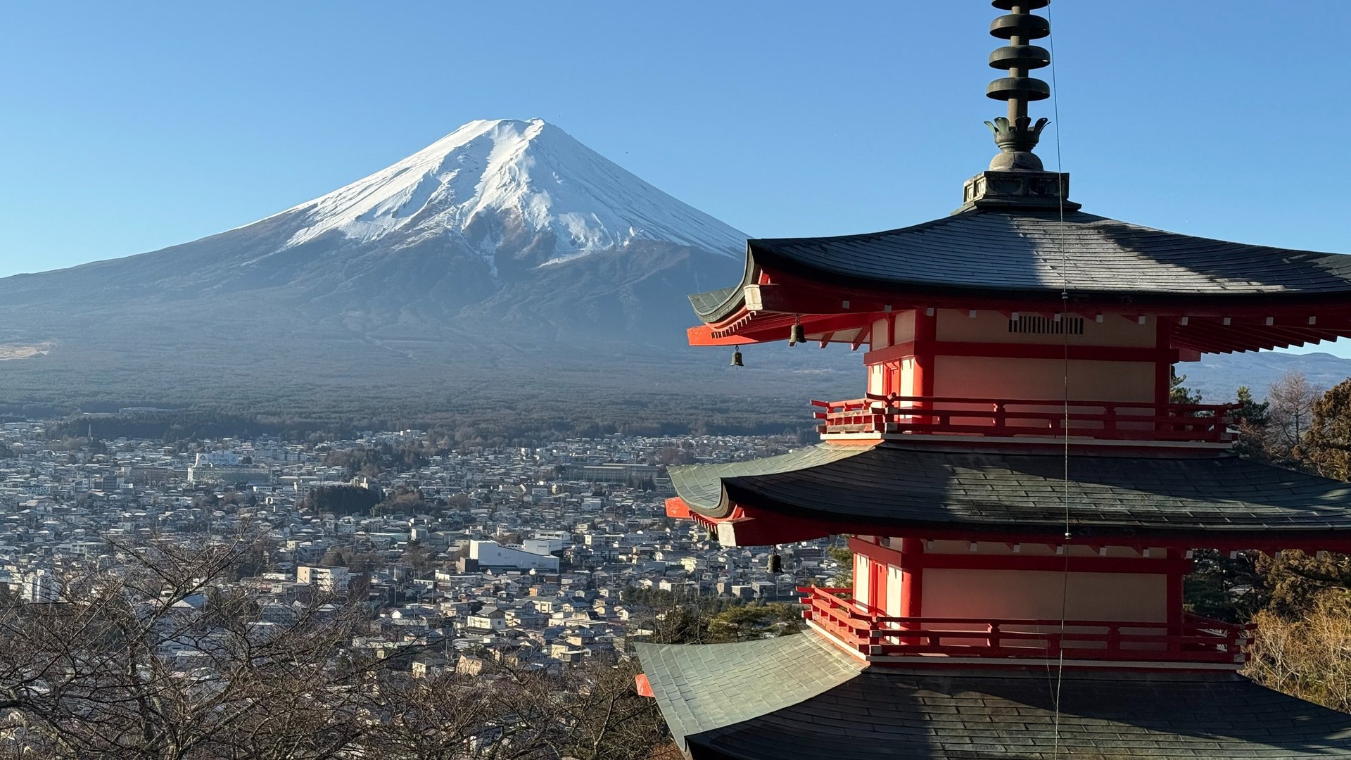 O Fuji tem uma presença diferente. Mesmo de longe, ele chama a atenção e passa uma sensação de calma difícil de explicar. Cada estação muda completamente o cenário: no inverno, ele aparece coberto de neve, quase perfeito; na primavera e no verão, o céu azul deixa tudo ainda mais impressionante; no outono, as cores ao redor deixam a paisagem simplesmente absurda de bonita.